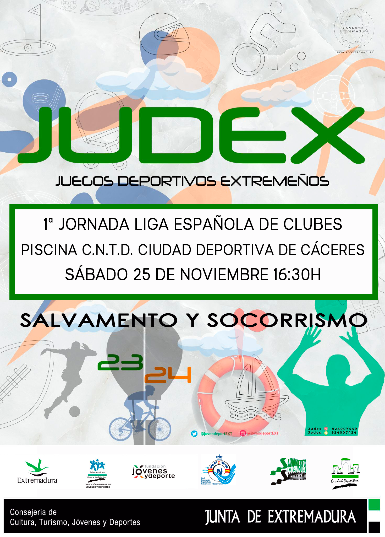 Comenzamos la primera jornada de liga de clubes de salvamento y socorrismo de Extremadura con una jornada de tarde el sábado 25 de noviembre en la piscina climatizada del CNTD Ciudad Deportiva de Cáceres.